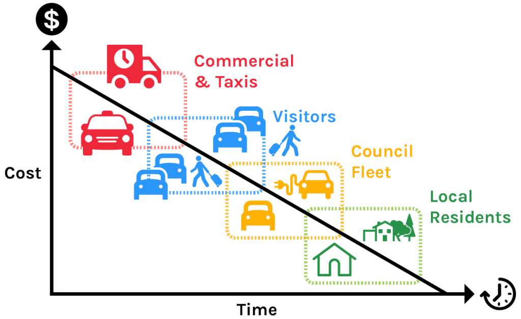 Importantly, a significant proportion of the residential population lives in housing stock without access to off-street parking. This presents additional challenges for the charging of electric vehicles and this project included an analysis of how to plan for the installation of publicly accessible charging infrastructure. The image below offers an example of the design work prepare for the City of Port Phillip to demonstrate how EV charging bays may be incorporated into public spaces in the future.