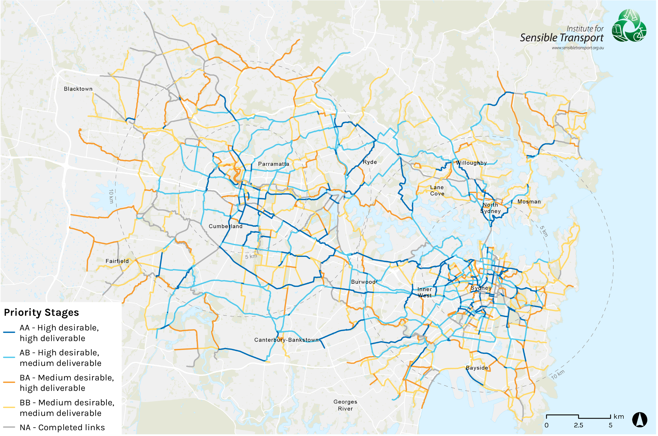 Like other Australian cities, the cycling network in Sydney is fragmented. This prevents many people from choosing cycling as a mainstream transport option. The NSW government has identified over 1,000km of potential bicycle infrastructure. Our job was to work out what to build first, and which components to complete later.